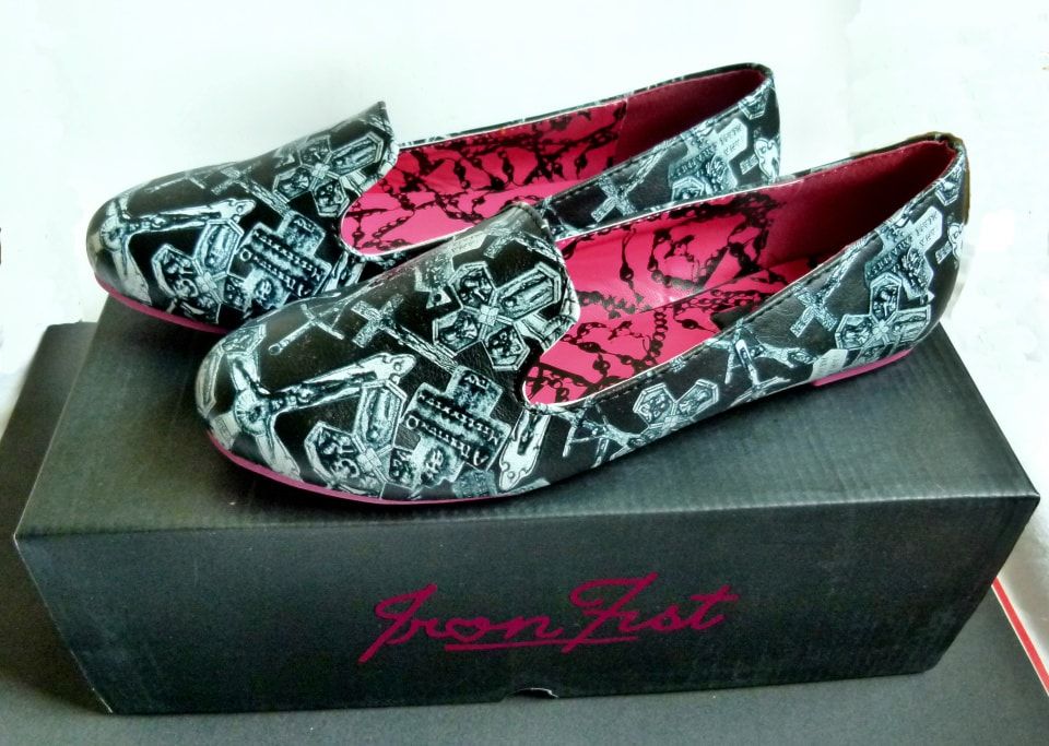 Schwarze Halbschuhe/Slipper mit weißem Muster und pinker Sohle - Gr. 37,38 - NEU im Originalkarton 22 €